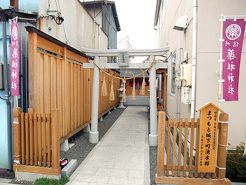 城下町松本に、「くすりの神様」を安置して、薬業界の安泰と商売繁盛を祈念して、平成19年10月に竣工されました。日の出の泉「薬祖水」と共に、暮らしのなかに憩いの場所として、親しまれています。